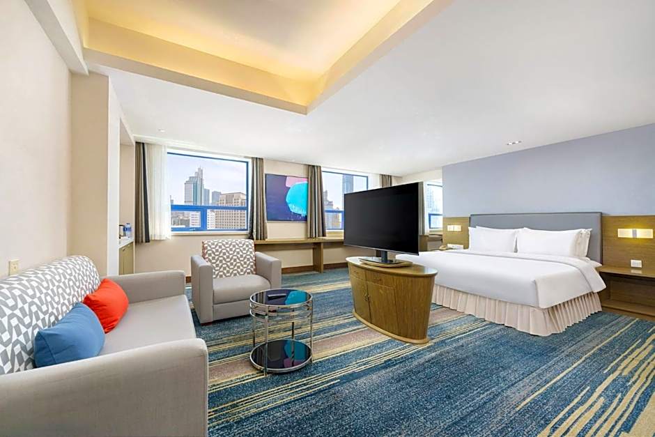 Providing free toiletries, this suite includes a private bathroom with a walk-in shower, a bath and a hairdryer. The spacious air-conditioned suite provides a flat-screen TV with cable channels, soundproof walls, a seating area, a wardrobe as well as city views. The unit offers 1 bed.